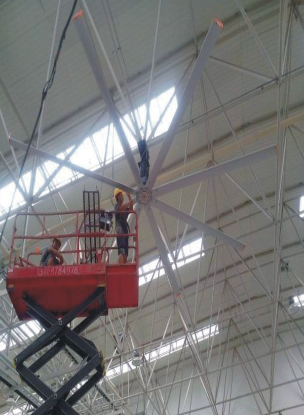 大型工業吊扇直徑達5-7米,功率為1.5千瓦,風力柔和、無噪音,能滿足200-500平方米的室內降溫、通風等要求。